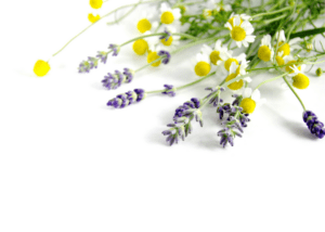 Begin by infusing your oil with the dried lavender and chamomile flowers. If using the long method, place your oil and herbs in a jar, cover and shake well. Place in a room temperature dark place. Shake every other day for around 6 weeks. After the time has elapsed, strain the herbs from the oil. Give the herbs back to the earth once strained.